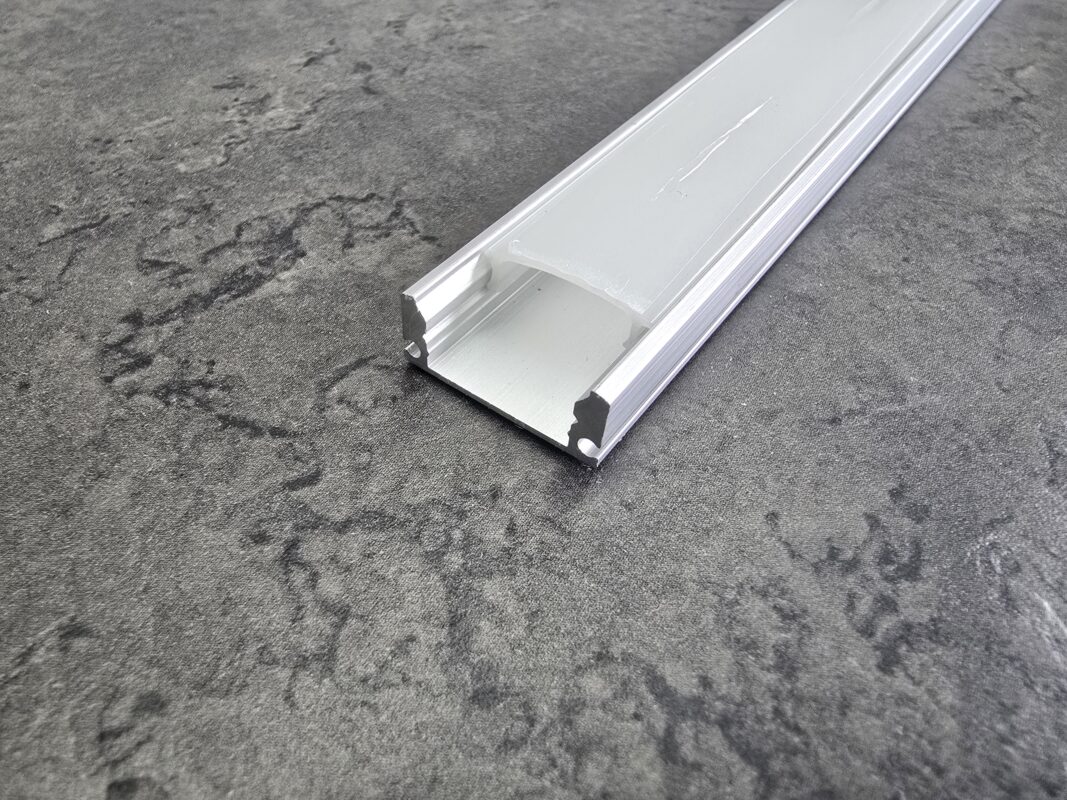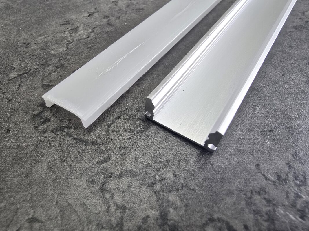 Standard Surface Mounted Aluminium LED Profile (2m) - Wide Channel, Max PCB 20mm - Complete with Fixing Accessories