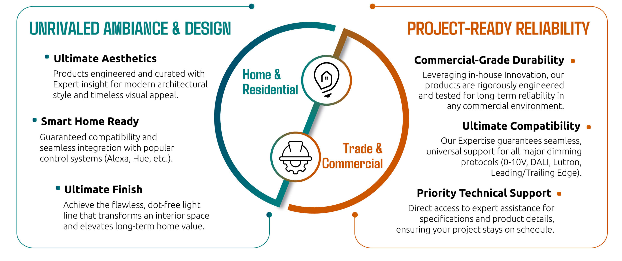 Our Ultimate commitment is simple: to fuse relentless Quality and in-house Expertise to deliver unmatched lighting performance, whether you're transforming a single home or powering a large-scale commercial project.