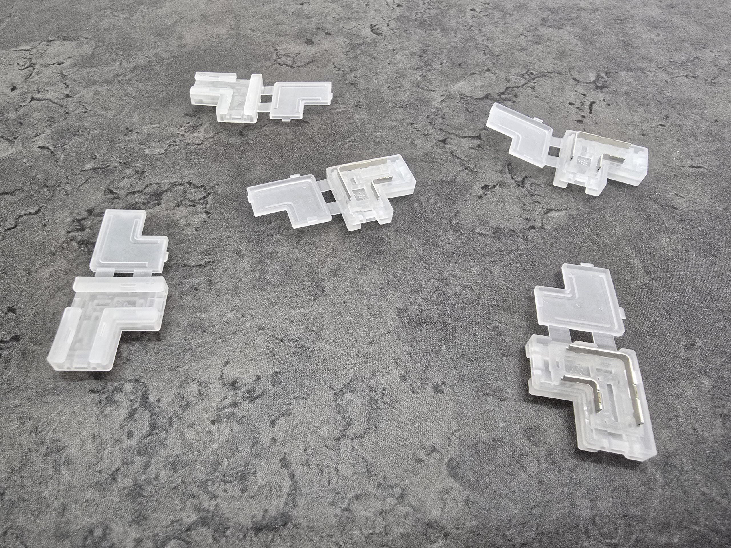 | T-Shape Junction | Splits the power and light signal from one incoming strip to two outward strips (1 input, 2 outputs). | Three-Way Branching: Essential for custom installations around square objects, such as cabinets, shelves, or architectural features. |